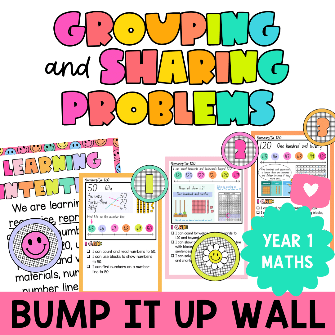 Make equal sharing and grouping crystal clear for your Year 1 students with this ready-to-print Bump It Up Wall aligned to Australian Curriculum v9 (AC9M1N06).