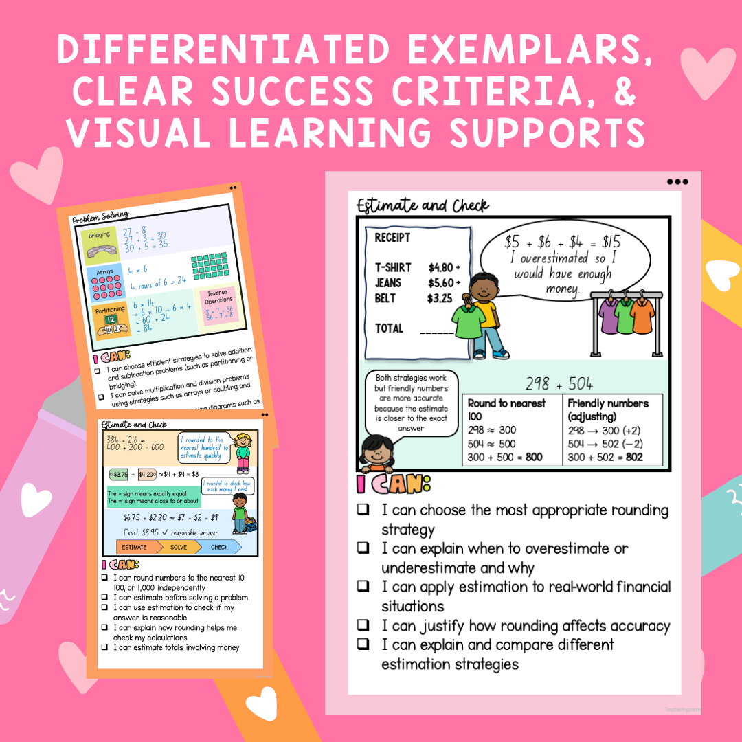 ✔ Visual models showing estimation, rounding, and checking strategies